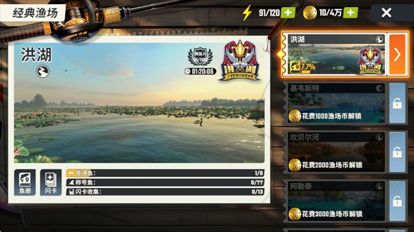 2、选择场地,可以拿渔场币解锁