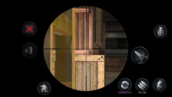 4、玩家在使用狙击枪时大致操作位置相同,在点击射击按钮后进入开镜模式,开镜模式下右侧会显示开镜的倍数和退出开镜模式的按钮。同时普通模式的按钮全部保存,玩家可以随心所欲的操作。