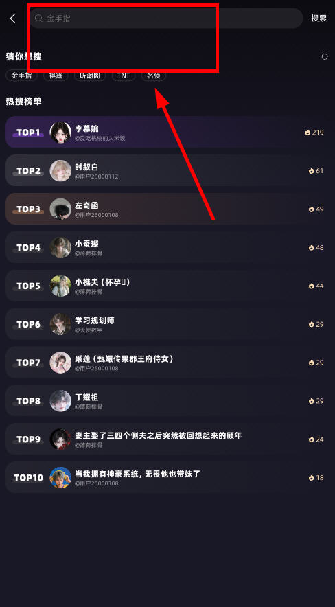4、也可以在搜索框输入自己想搜的角色名称,下方还有热搜推荐参考;