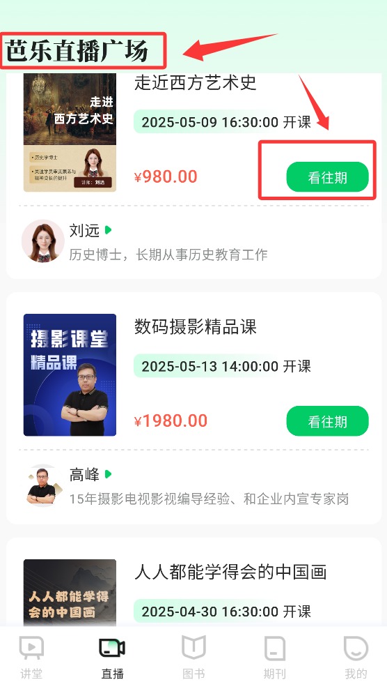 4、芭乐直播广场汇集行业达人的实时教学与互动分享,可预约关注场次并参与在线提问。
