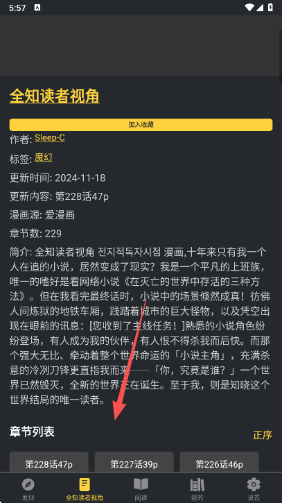 4、收藏管理:轻松收藏喜欢的漫画,并管理已阅读章节,方便查找。