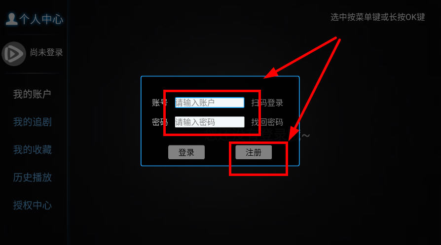 2、在首页浏览推荐的剧集,随便点击哪里在弹出的登录页面注册登录账号,随机输入即可;