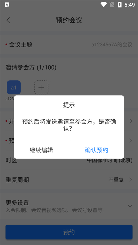 2、选择参会方,选择开始时间和预估时间;