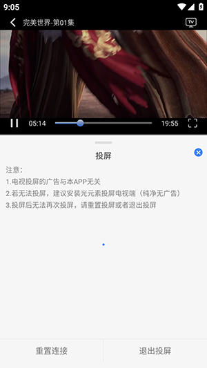 6、点击右上角的TV图标等待软件搜索投屏设备即可。