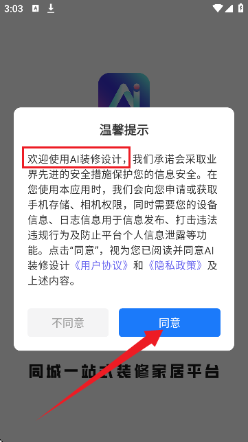 1、下载安装好这款AI装修设计手机版APP,然后打开;