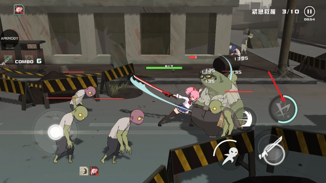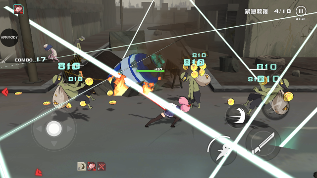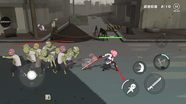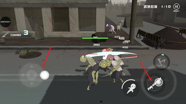 1、开始游戏后,拖动左侧的摇杆控制移动,点击右侧的按钮进行攻击。