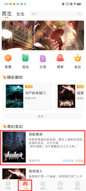 1、打开软件进入“书城”页面,选择想要阅读的小说