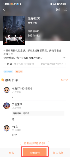 这里会对用户正在追更的小说章节更新实时的提醒,方便用户及时追更喜欢的小说。