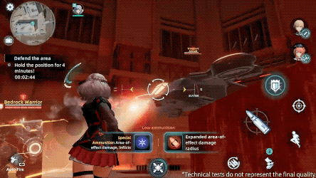 UI元素方面,小地图上的队友标记和状态栏等信息揭示了游戏内PVE联机玩法的存在。部分演示中还融入了Rouge元素,玩家可通过选择“战斗核心”来增强作战效能,例如缩短减益效果的施加间隔或提高特殊弹药的单发伤害,这进一步暗示了游戏可能采用多类弹种设计以丰富阵容搭配策略。