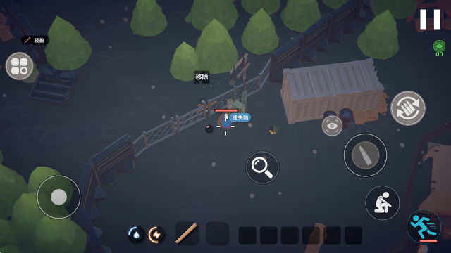 1、进入游戏后,左侧的摇杆控制移动,右侧还能够蹲下和加速。