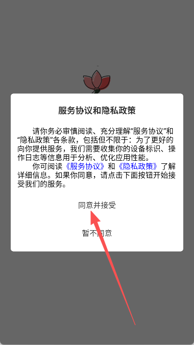 1、打开软件,我们首先需要同意并接受软件的政策。