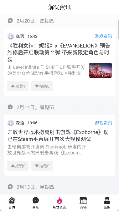 5、通过“解忧资讯”了解相关资讯,包括二次元游戏等。