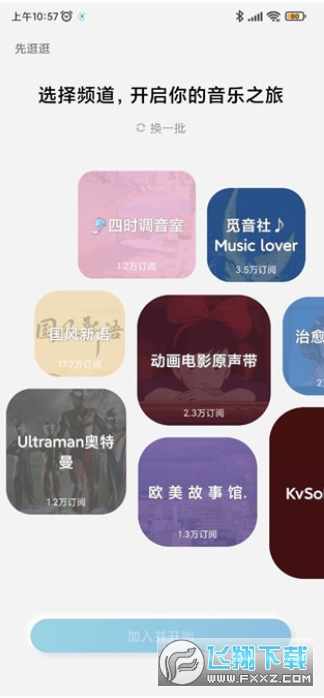 1、在本站下载并安装酷狗免登录版,选择喜欢的频道,点击加入并开始