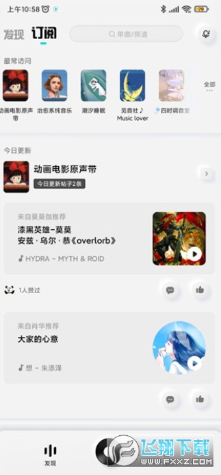 3、点击订阅,可以查看刚才你所加入的频道的音乐