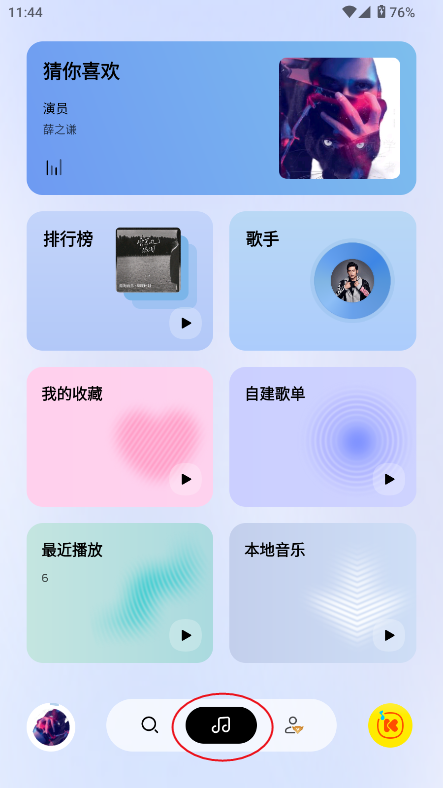 2.点下方的搜索按钮可进入搜索框找歌曲。
